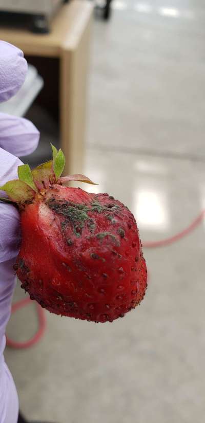 Any idea what fungi causes dark green sporulation on strawberries?