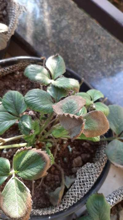 How to save thses strawberries from dieing.? Leaves are turning to brown colour, nothing can be observed please help.