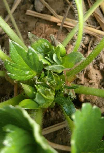 The strawberries are being grown in a northern garden in a raised bed under bird nets to keep out birds, chipmunks, & squirrels..etc.