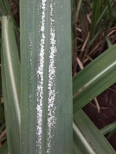 Please solve my sugarcane crop on leaves white in colour