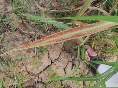 Learn more about PlantixI have seen these bright red patches on the leaves of sugarcane. Guide me what is this and what could be done.