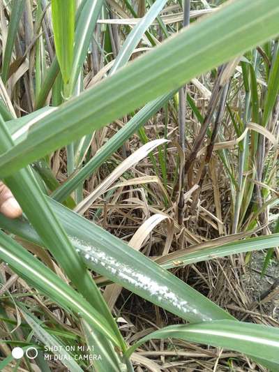 Hi Mustaq Shaikh. This Sugarcane crop is severely effected by Mealybug . Click on green link for checking symptoms and taking control measures from Plantix library. Also use fertilizer calculater, crop Advisory, see all tasks and weather report sections available here on home page of Plantix to increase your crop productivity.