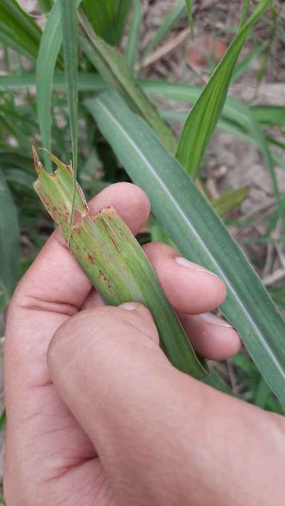 Hi Sandeep Panjeta. Image is not clear. Though on zooming compare symptoms with Eyespot of Sugarcane or Orange Rust of Sugarcane by clicking on green link for taking control measures from Plantix library from your end.