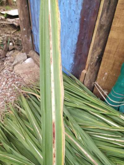 Edges of leaves are dried,tip is dried and brown and red spots on the tip. 7 months sugercane can't use spray