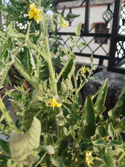My tomato plant was 25 days old and this type of problem I saw today. I don't understand what's happening with plant can anyone say why this happen and I need to do for healthy growth of plant 🌱???