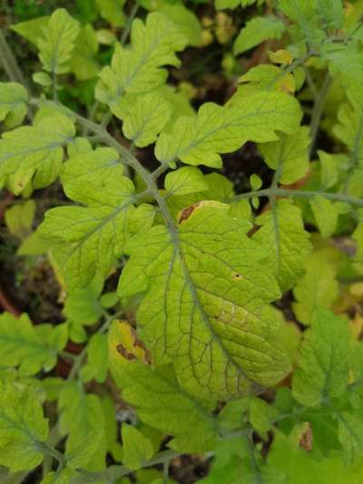 It might be due to Iron Deficiency Leaf Miner Flies and Whiteflies . Review plantix library by clicking on above green links for detail information