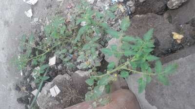 Hi Yaseen Khan . Yes it's a Tomato plant. Apparently above, on closer observation it's seems to be effected by Leaf Miner Flies and Potassium Deficiency . I think it grown automatically towards road, if I am right. If you want good fruits apply sufficient quantity of FYM or Vermicompost and mix well with soil base. Give optimum water depends upon soil and climatical conditions. Take care of pest and deseases in time. So you will get good fruits. Click on green link for control measures. Thanks for visiting.
