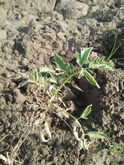Dear Deepak.... ofently it may due to soil condition .. and moisture stress in background soil doesn't look like fertile soil provide proper oragani matter and water to soil .. beacuse it is intial stage of plant which require more organic matter for vegetative growth