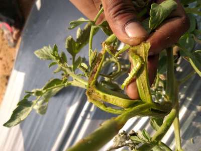 This larva is penetrating inside in Tomato plants