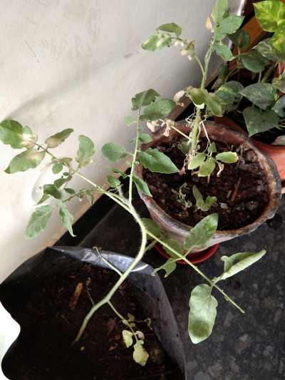 Tomato plants in pots at home are drying