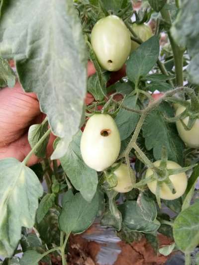 Venkatarama Reddy It seems the attack of tomoato fruit borer. Removed the damaged fruits & buried them into soil. Do the applicaton of lamdacylothrine to kill their adults.
