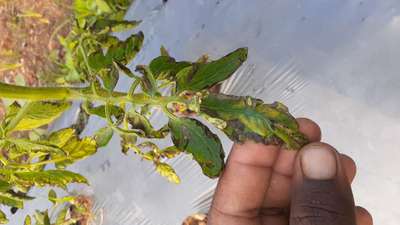 Hi Naveen Ghoshal . It looks like Tomato Yellow Leaf Curl Virus . This disease spreads through vectors like Aphids . So, you first control vectors, disease automatically reduced. Click on both links for checking symptoms and taking control measures.
