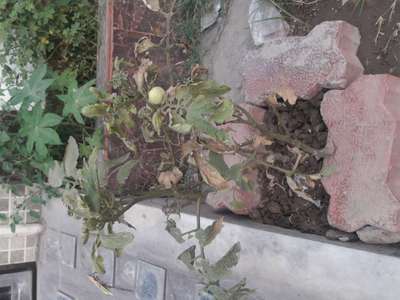 Its a tomato plant . Its growth is not proper as well as leaves are turning brown . Please help .