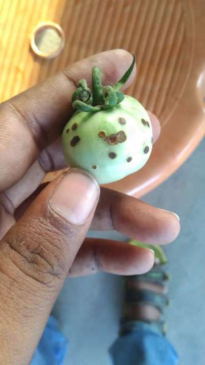 Hi Santhu Santhosh , do observe any insects fruit inside . If it is not insect , this is due to late blight of tomato tomato.More and information for diagnosis and control measures review at Bacterial Canker of Tomato