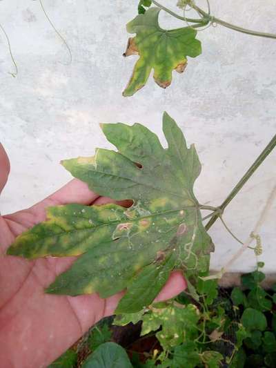 Hi Zeeshan Mansoor , It seems your plant is under attack of Downy Mildew of tomato & Leaf Miner Flies. Please click the above green tag to get information about their control mesures. Jazak Allah