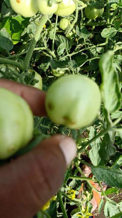 Hi Sameer . As per your sent image, your tomato crop is severely effected by Early Blight and Leaf Miner Flies . Let's click on both green links for checking symptoms and taking control measures immediately.
