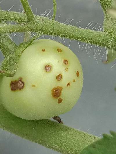 Tomatoes were not even grown to ripe , there is no spider on it but I saw larvae on the leaf , u can see in the uploaded photo