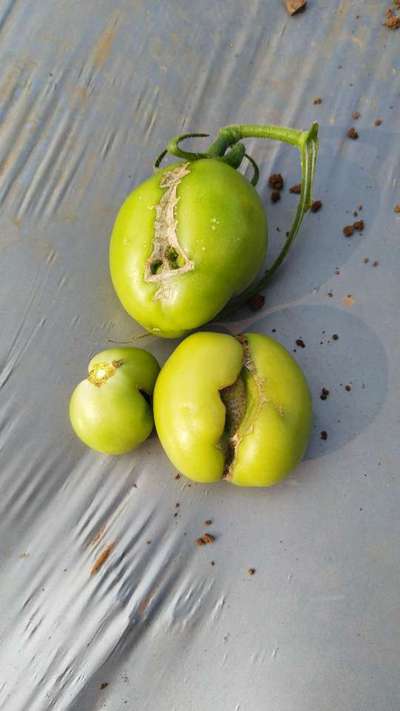 Hi Aaftab Saba. Compare symptoms with Tomato Catface and Calcium Deficiency by clicking on green links given here for taking control measures from Plantix library. Also use fertilizer calculater, crop Advisory, see all tasks and weather report sections available here on home page of Plantix to increase your crop productivity.
