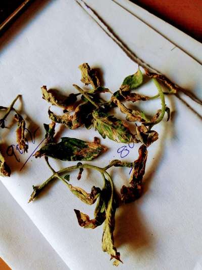 Learn more about PlantixDrying of leaves near veins of the tomato leaf. And also found small 1.5cm dark green caterpillar.