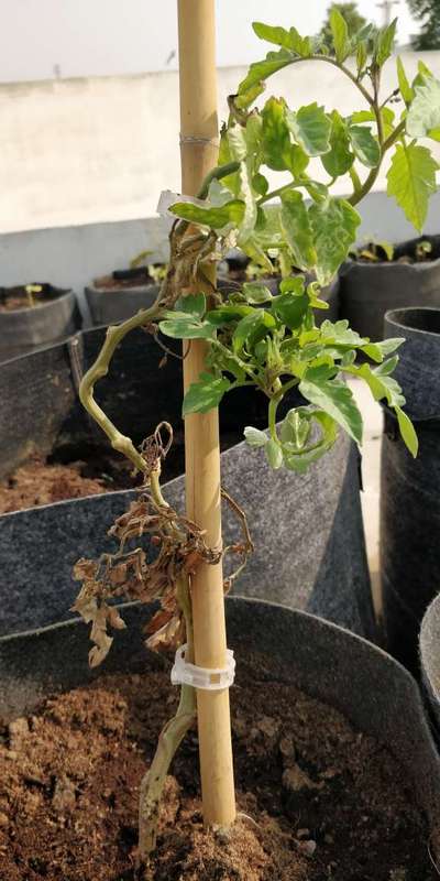 Infection seem to start at the stem and attack lower and older branches, that eventually fall off one by one...