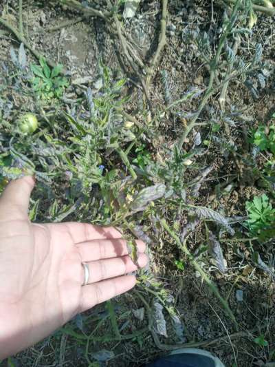 Hi Pawan. Your sent image is not clear. It might be the possibility of Phosphorus Deficiency or Tomato Late Blight or Powdery Mildew . Lets click on green links given here for knowing symptoms and taking control measures from Plantix library. Lets check symptoms at your end.