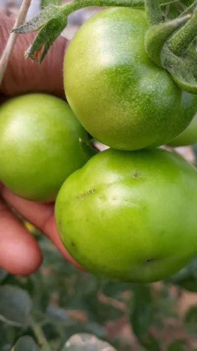 There are white dotted like spots, brown spots and line is formed on middle of fruits please help me to identify the problem