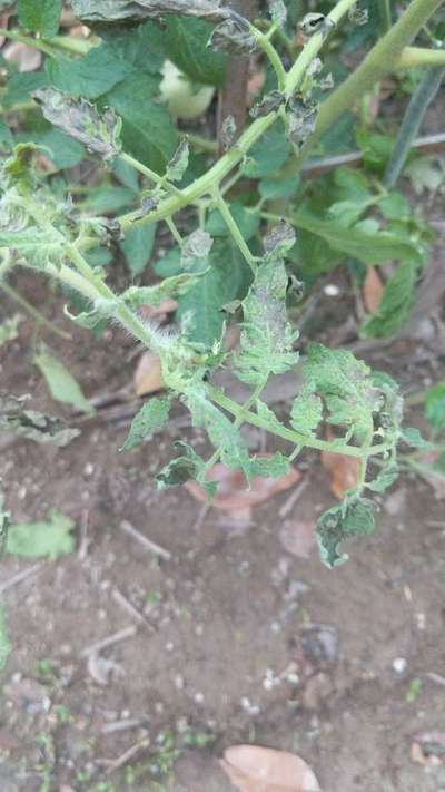 Tomato plant, fruit is fine till now. Leaves turning black leaves and branches drying up and weak ,turning yellow. Organic pesticides used weekly.