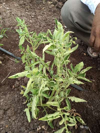 Hi Vaibhav Panara . It seems to be like Leaf Curl in Tomato . Click on green links for checking symptoms and taking control measures from Plantix library. Also, it might be due to summer heat stress - lets give optimum water regularly during evening hours to overcome this issue. Try and take care of your crop.