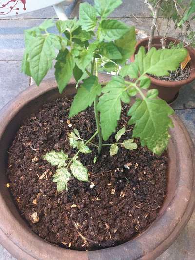 Learn more about PlantixThe lower leaves of the cherry tomatoe plant are getting white spots. No insects. Enough sun, daily watering of the ground, no water on the plant.