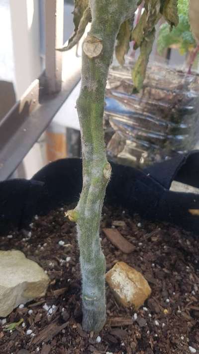 Infection seem to start at the stem and attack lower and older branches, that eventually fall off one by one...