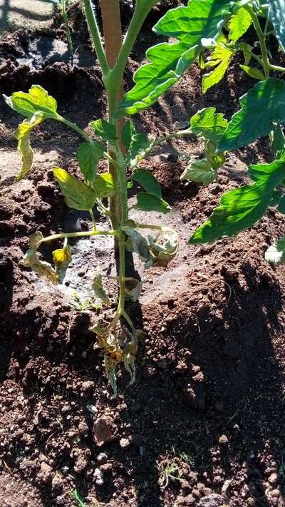 tomato plants have a sudden change in leaves colour (green-yellow) then other parts are starting to wilt. What might be the problem and treatment!