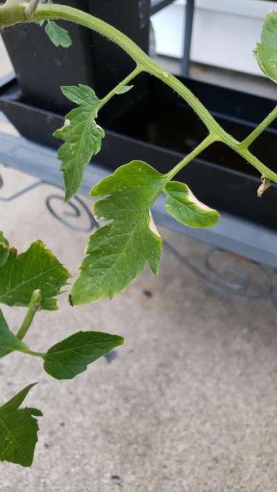Learn more about PlantixThis is a slicing tomato plant. Why are the edges of it turning white?