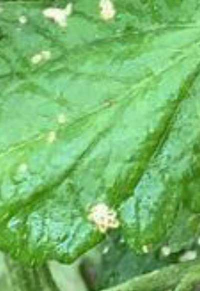 Please let me know the cause of these white spots on tomato leaves. What's the remedy?