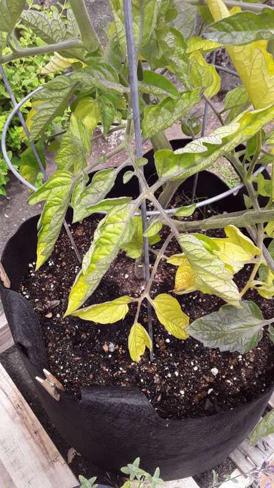 Yellowing leaves on lower branches and some wilting, mostly on those branches, not over the whole plant.
