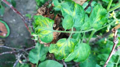 The leaves of cherry tomatoes have different shades of green, in a single leaf. Is this normal ? I have never seen leaf with varying shade of green. Leaves have green colour in different shades, they are not yellow in colour, it may be camera software issue.