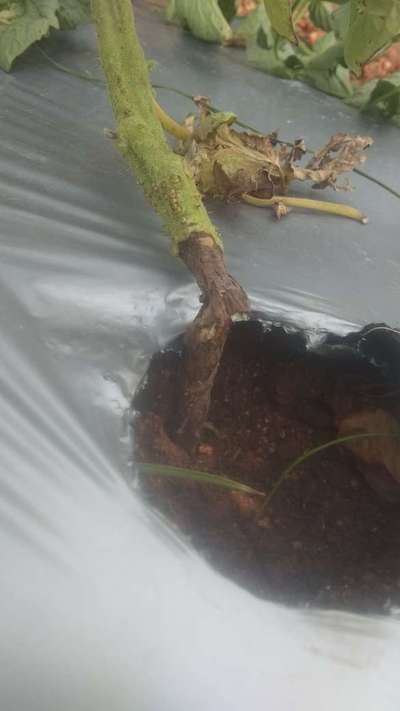 Hi D Venkatramana. It seems to be like Fusarium Stem Rot . Click on green link for checking symptoms and taking control measures from Plantix library.