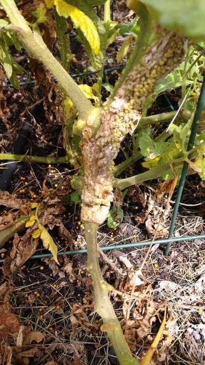 Hi J Grant it's pith necrosis disease. Plesae click on this link: https://ag.umass.edu/vegetable/fact-sheets/tomato-pith-necrosis