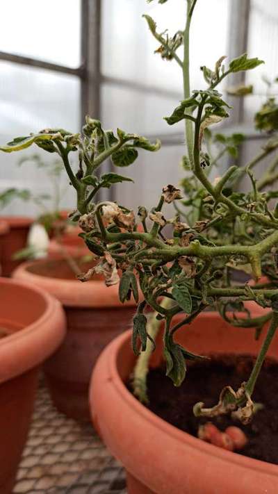 Hi Stuti K.. I am not sure, but compare symptoms with Tomato Yellow Leaf Curl Virus and Tomato Late Blight by clicking on green links for taking control measures from Plantix library.