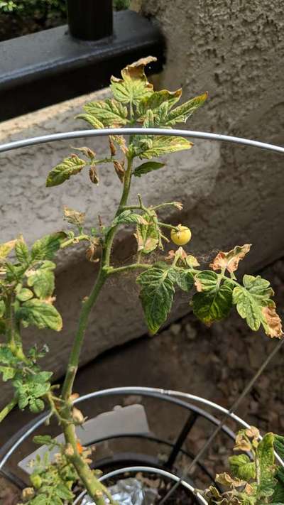 Learn more about PlantixLooks like it begins with slight yellowing between the veins but progresses to the leaves dying in a week's time. The stems of my tomatoes are turning brown too