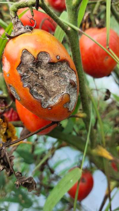 Learn more about PlantixBrown white but deep spots on shoulder and middle parts of the fruits