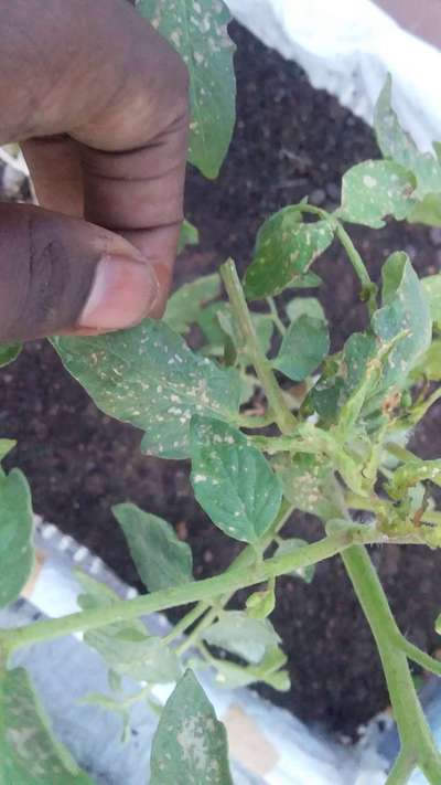 This our plant that is tomato plant . Today my plant had this brown colour dot .why ? it was on our plant am did not know anything . It will by cause by sun light ...... or pest attack plz plz plz ....... give me a solution for our plant because It is my first terrece garden