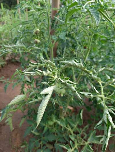 I was told that this is a very seriuos problem with tomato. Said to be a viral disease. The leaves are curled and it spreads very rapidly.