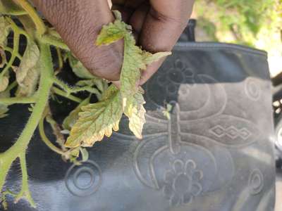 The tomato crop is 50 days old, the plants started showing wilting and purple color lining is seen on younger leaves and have stunted growth. Also, plants dying at the end after few days... In some plants, only one branch shows this symptom and gradually in few days whole plants becomes wilted and even new plants are getting this symptoms.