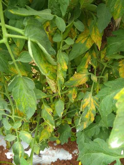 Mahadesh This is most possibilities of being associated with Magnesium Deficiency in tomato.