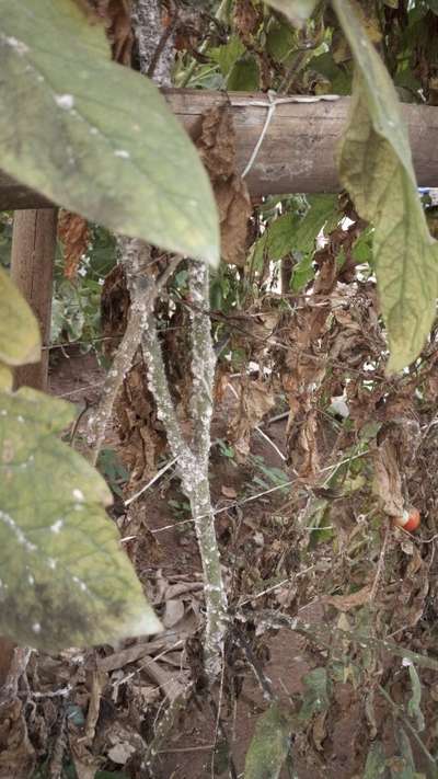 Learn more about PlantixSome white substance appear on the stem. The substance feels like cotton and is powdery. The leafs or the affected plant turn yellow and the plant dies. It spreads from one plant to another