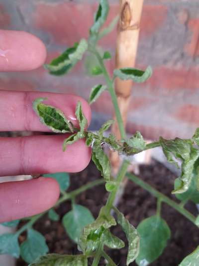 Subham Saurabh weather is strange these days .. it should be winter but still feels fine not hot or cold .. and I think if it is cold related issue then it should turn into purple right? Anyway, I have others said it is Tomato Yellow Leaf Curl Virus and I got rid of the plant .. unfortunately it is 2 months old and never grown over this, maybe cold started hitting it first before this issue because it was not like that when it took so long to grow from young age