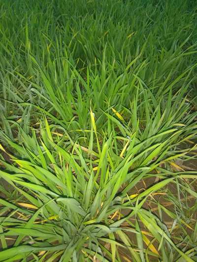 Nitrogen ki kami h urea ka chhidkav karo aur agar urea ka chhidkav kiya hua h to dekho ki jade gal to nahi rahi h agar jade gal rahi h to khet m dimak h uske liye irrigation water m car ka used black oil thodi matra m mix kar k pani de