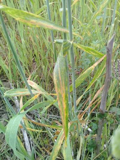 ye bemari clorofil ki kami say hoti h jub sorj na nakly to is ko rust ki bemari kehty hn app is ko salfr or mankozaib ka sapry kry thik ho jy ghi