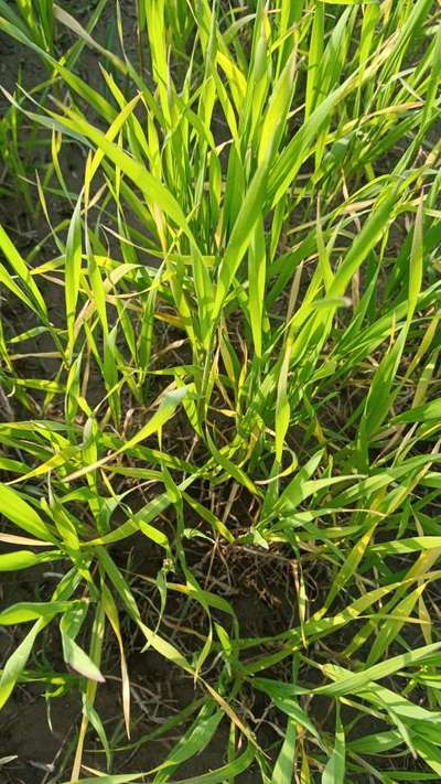 Hello this is my wheat crop which is at 80 days of age, but it has this problem, the wheat leaves are yellowed first, then drying and the plants are small and the footage has also reduced.