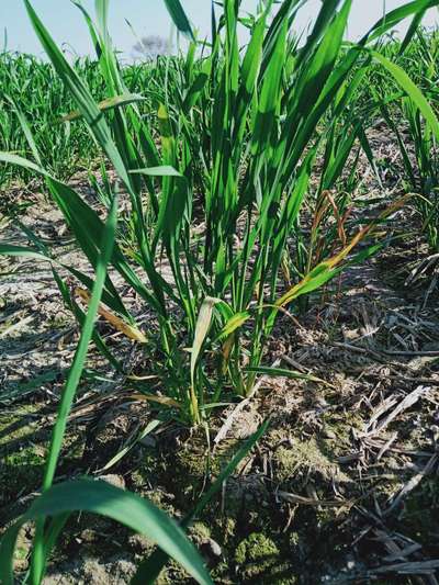 Yellowish colour of wheat crop at booting stage